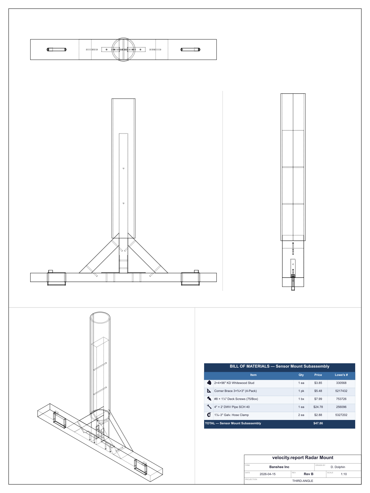| ABS pipe, 4-in × 2-ft | $25 | Sensor mast |
